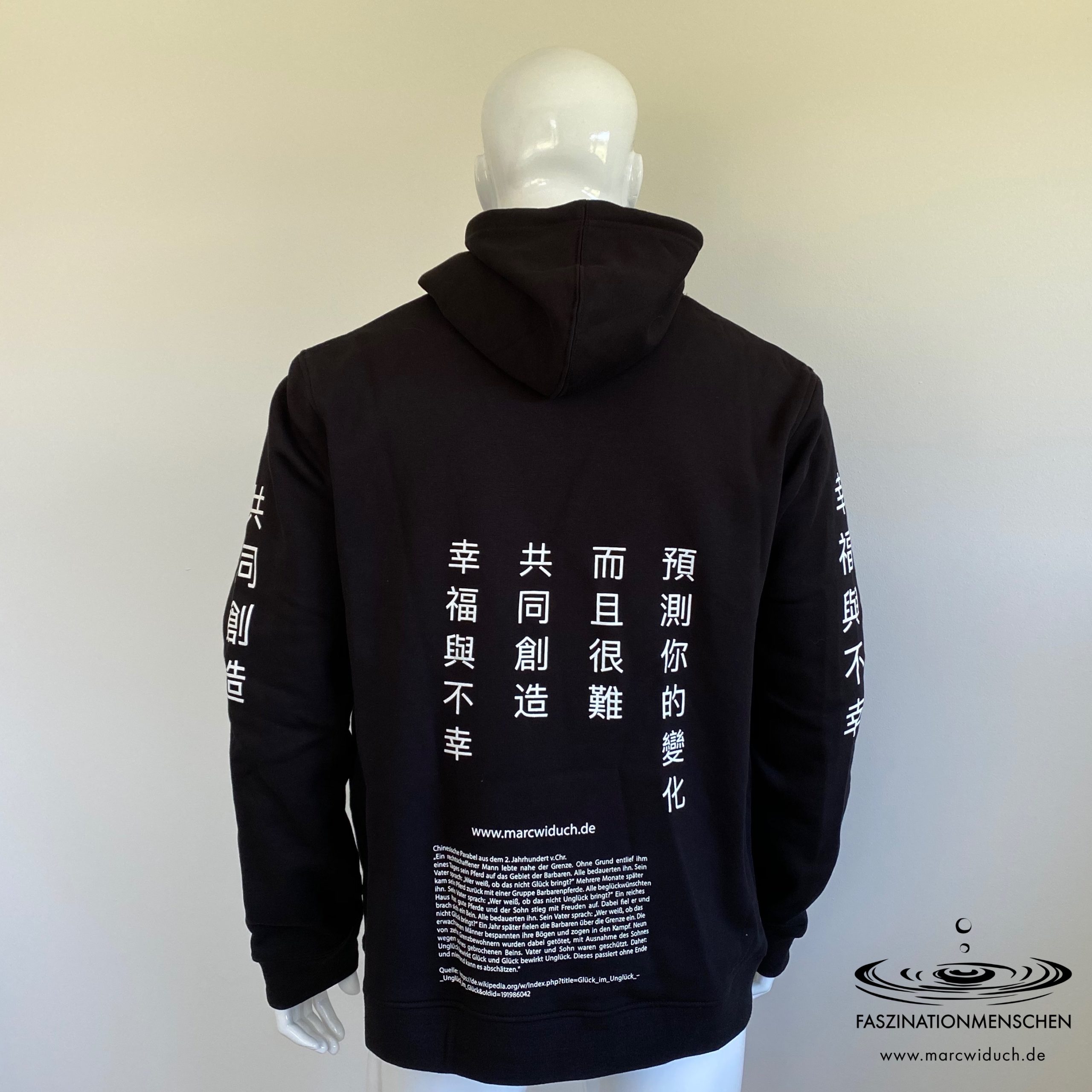 Kuscheliger Hoody mit der schönen Chinesischen Parabel aus dem 2. Jahrhundert v. Chr., in der ein weiser Mann weiß, dass die Wankelmütigkeit von Glück und Unglück nicht abschätzbar ist – und sich beide bedingen können.